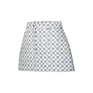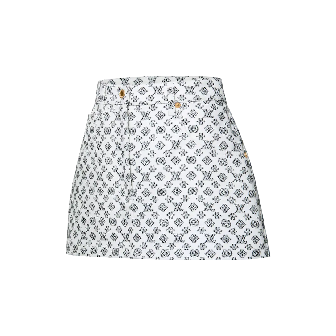 This relaxed cotton gabardine miniskirt features a bold, graphic Monogram motif with a blurred fil coupé effect this season. Designed in a classic A-line silhouette, this piece features five pockets and belt loops for versatile styling. Gold-tone hardware, including a Louis Vuitton plaque, adds a refined, structured touch.
