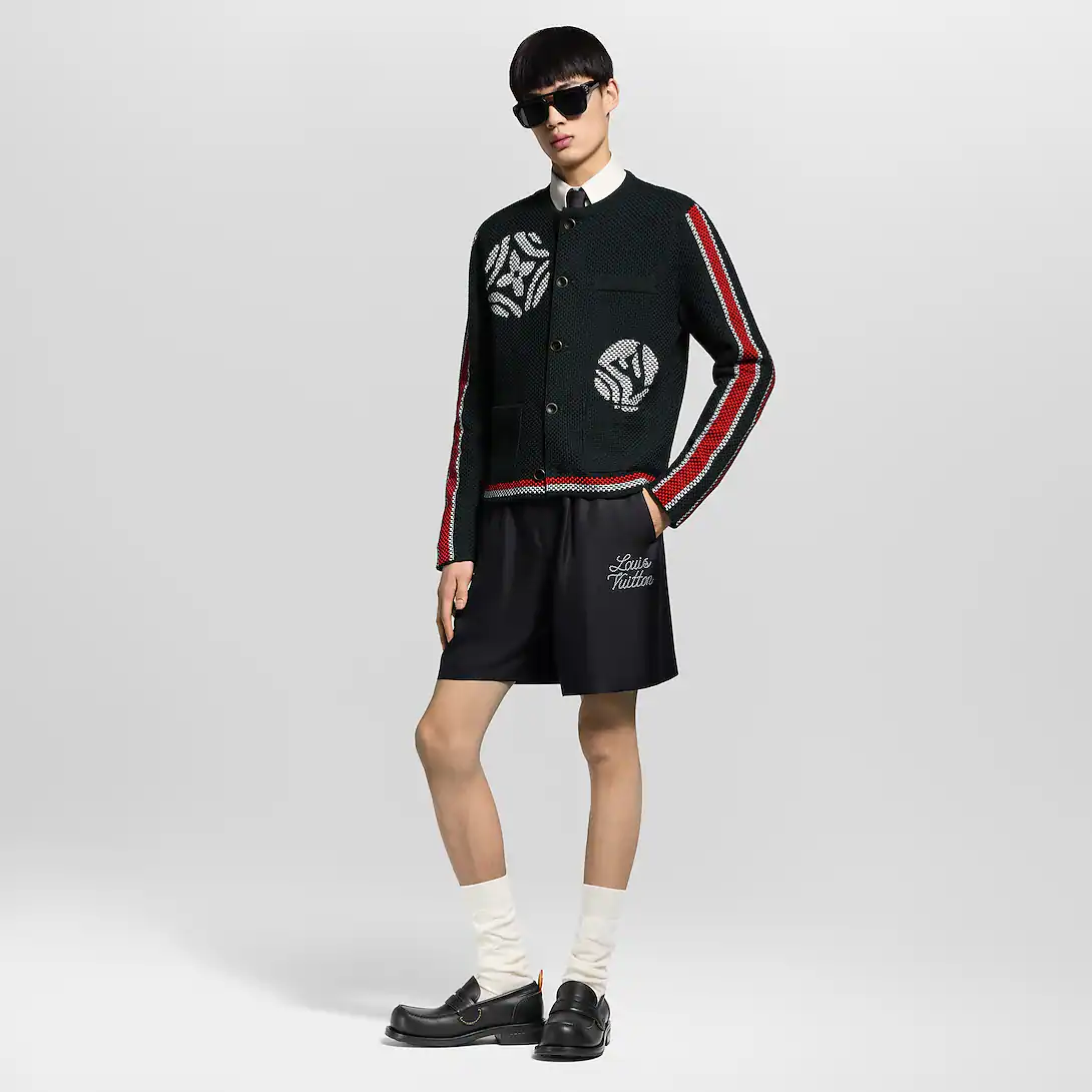 Crafted from fluid silk twill, these black shorts with a drawstring waist offer an effortlessly chic style for summer. A printed cursive Louis Vuitton signature adorns the left leg with contrasting pearly white dots. Easy to style dressed up or down, this piece also makes an elegant day-to-evening set when paired with a matching open-collared shirt.