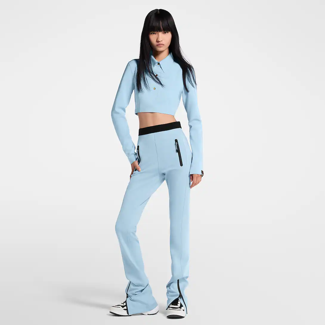 This polo shirt revisits a classic style in a short, fitted version with long sleeves. A flat collar and snap-button placket highlight its sporty look. Crafted from the House’s signature technical jersey, this model, available in one of the season’s colors, is adorned with a Monogram flower tab on the left cuff.