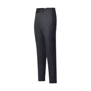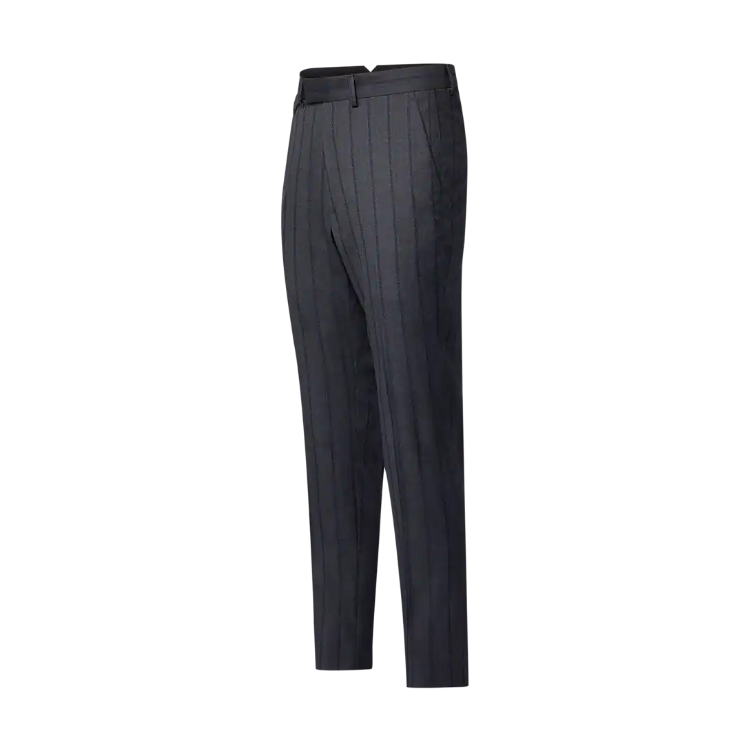 These elegant tailored wool trousers play with the codes of tailoring by reinventing the classic pinstripe motif, which is reconfigured here as a string of miniature LV signatures integrated into an LV Stripes jacquard. Crafted from fine wool in chic grey tones, these flattering trousers make a sophisticated suit paired with a matching jacket.